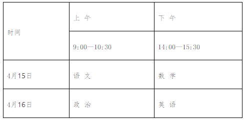 3.考试科目:文化课考试科目为语文、数学、政治、英语4科,每科满分150分,四科满分为600分,使用国家通用语言文字作答。